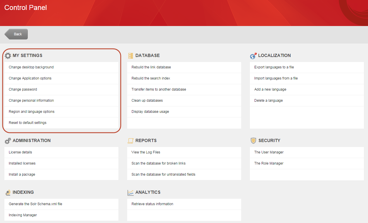 Log in to Sitecore, and on the Sitecore Launchpad, click Control Panel.