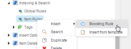 2. To create a new local item rule, right-click on the Item Rules item and then click Insert,Boosting Rule: