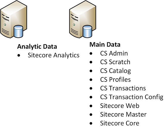 Sitecore recommends that you install the Commerce Server (CS), Core, Master, and Web databases on a single database server or multiple database servers that are located on the same network as all of the Web servers. If you are using Sitecore DMS, we recommend that you install the Analytics database on a dedicated database server. For more information about scaling Sitecore CMS and DMS, see the Sitecore CMS Scaling Guide.