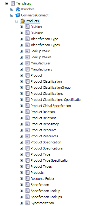 Product Artifacts is the folder template grouping together miscellaneous repositories relating to products such as Manufacturers, Classifications, Divisions, Types, and global lookup values. |