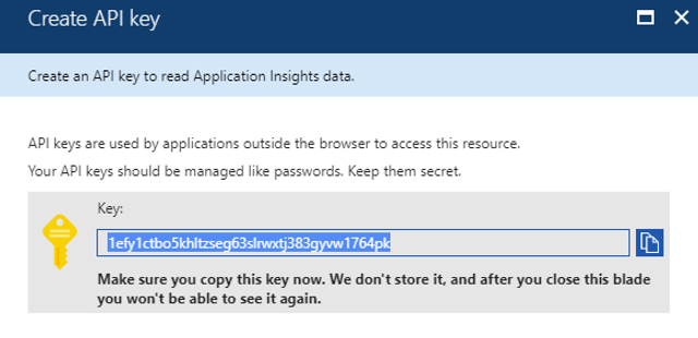 Click Generate Key. Azure assigns a key for you to use as a password in the Basic authentication dialog box.