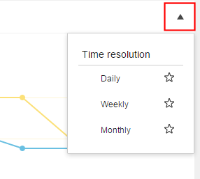 In Experience Analytics, when you open a report, click the drop-down icon to the right of the current report to see the available time resolution options.