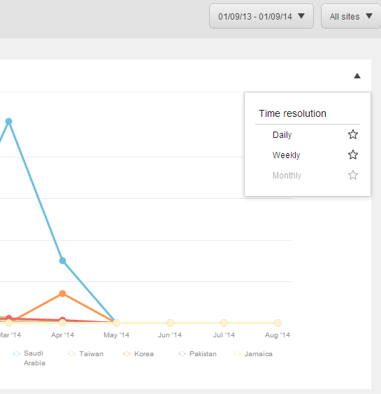 The default time resolution setting is automatically chosen depending on the date range when viewing the report. You can change this setting so that another value is the default, however, it is considered best practice if you leave the TimeResolution field blank.