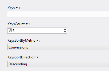 Expand the Data group, select the KeysCount check box, and enter 3 in the KeysCount field: