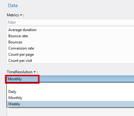 In the parameters item, under Data, TimeResolution, click a value in the drop-down list, for example, Monthly.