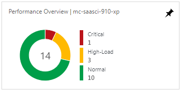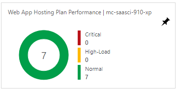 This tile also uses a pie chart to reflect the status of the WebApp hosting plans that are currently deployed in the deployment resource group. To help you quickly identify databases that require attention, the tile characterizes the status of each WebApp hosting plan as Normal, High-Load, or Critical.