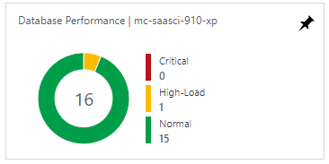 This tile uses a pie chart to reflect the status of the databases currently deployed in the deployment resource group. To help you quickly identify databases that require attention, the tile characterizes the status of each database as Normal, High-Load, or Critical.