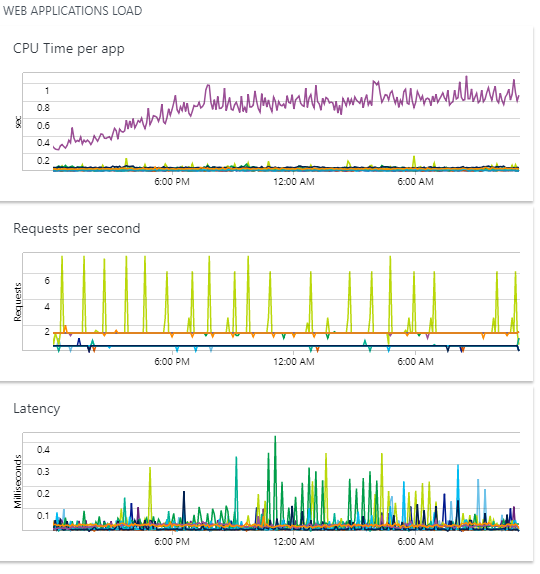 CPU Time per app - compares the CPU processing time per WebApp.