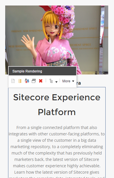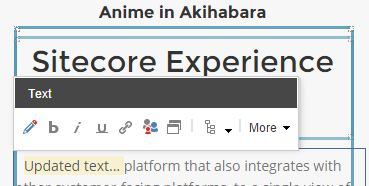 Click the component that you want to edit and add new content to the Sitecore placeholder component. For example, you can replace existing text in the placeholder component with your own text.