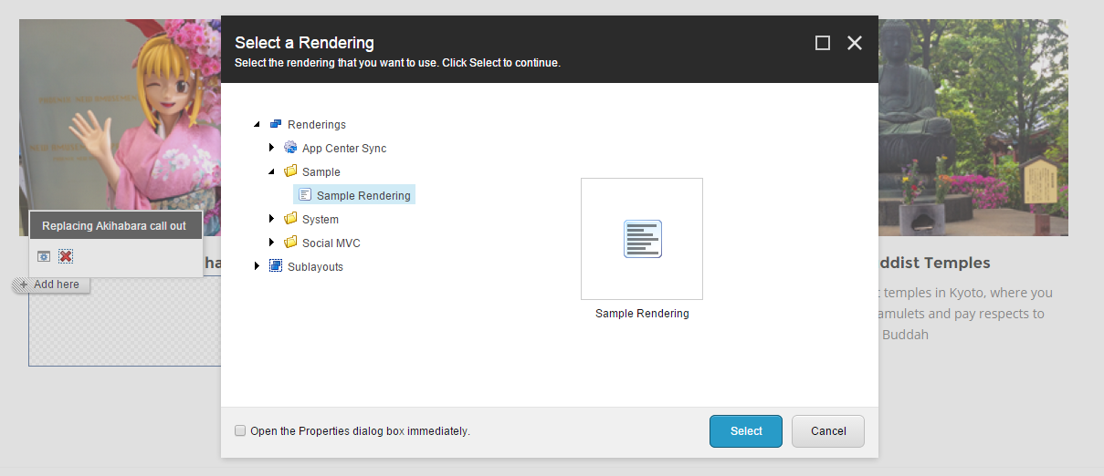 In the Select a Rendering dialog box, click the appropriate rendering for the placeholder component and then click Select.