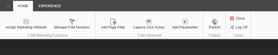 In the FXM Experience Editor, on the Home tab, in the FXM Marketing Functions group, click Assign Marketing Attribute. This allows you to edit all the components that you have added a placeholder to.