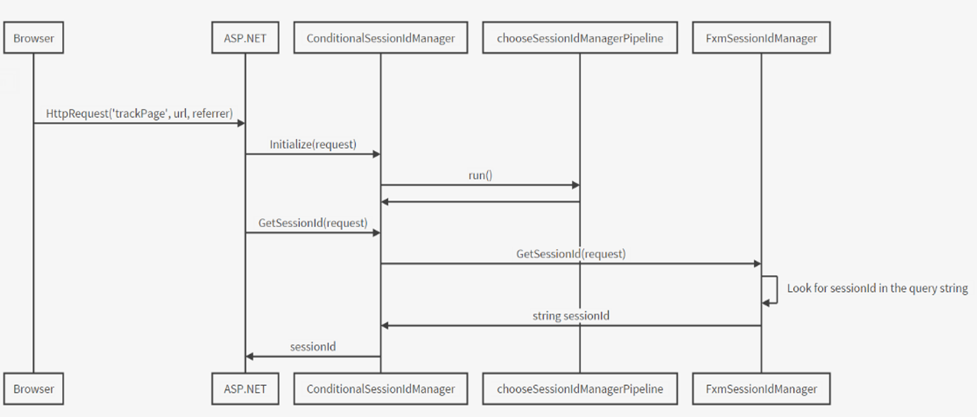 Session tracking in FXMVersion: 10.4 The following diagram describes how the Federated Experience Manager (FXM) interacts with the Session Manager in Sitecore.