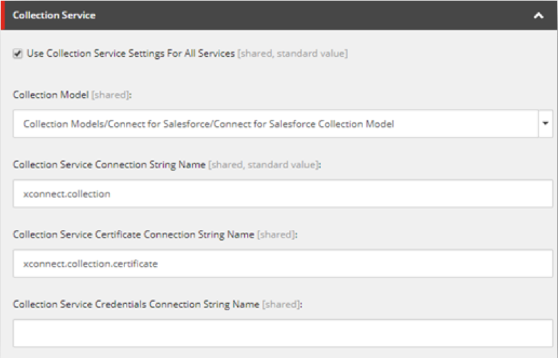 Connection string that identifies the xConnect collection service. By default the value is