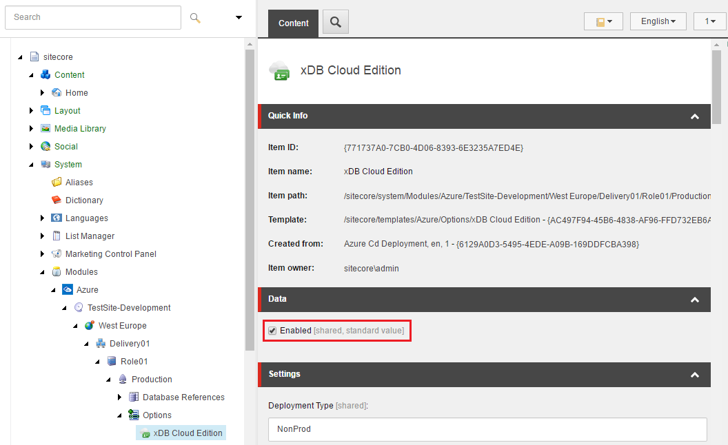 In the Data section, disable xDB Cloud by clearing the checkbox.