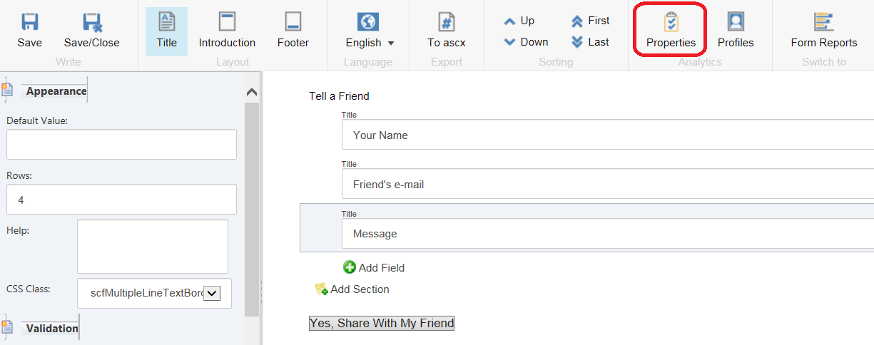In the Form Designer, click the Submit button and in the left pane click Save Actions.