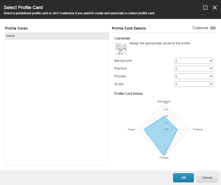 In the Select Profile Card dialog box, set the content profile values. The default values range from 0 to 10. However, these values can be modified.
