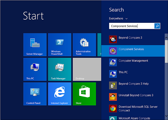 From the Windows Start menu, search for "Component Services", and then click Component Services.