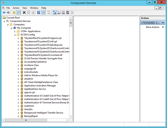 Expand the tree in the left pane until you have expanded DCOM Config.