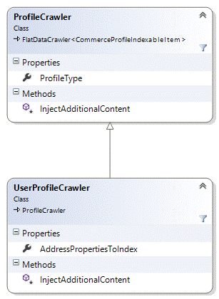 A derived version, UserProfileCrawler , is used for indexing the User Object, and for associating address and other information to the index.