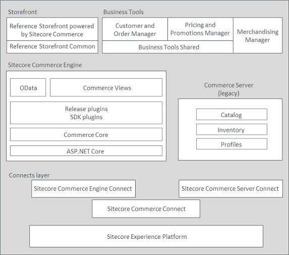 Commerce Server - A legacy component that is embedded in the Sitecore Commerce solution. This component is included in release 8.2.1, and will be phased out in a future release. The following Commerce Server subsystems are used in release 8.2.1: Catalog, Inventory, and Profiles