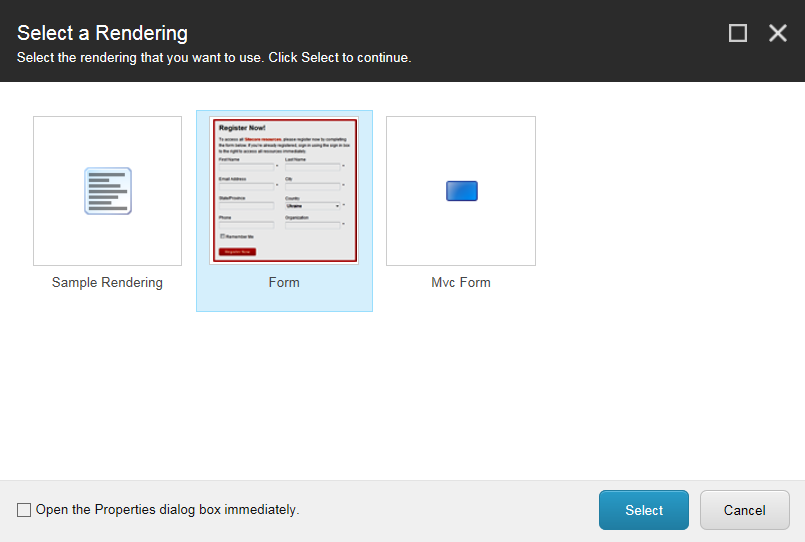 In the Select a Rendering dialog box, select a rendering for your form, and click Select.