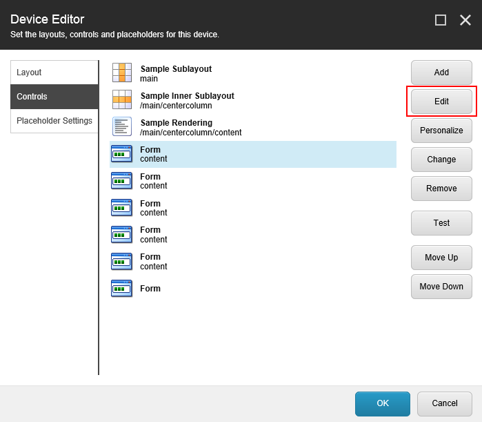 In the Device Editor dialog, click the new control, and then click Edit.