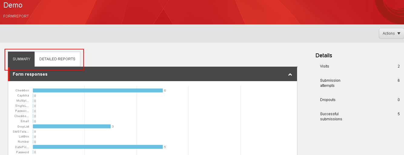 In the report, click the tabs to see either a summary or a detailed view of the form responses. You can see web form reports on two tabs in the Form Reports window: