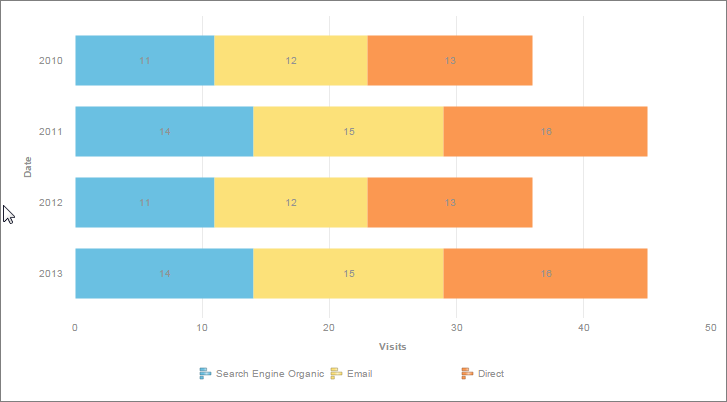 A stacked series chart is a multiseries chart where the distinct series are stacked: