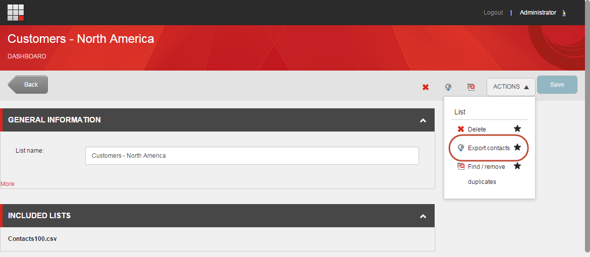 Similarly, if you want to transfer contacts from Sitecore to a third-party system or create a backup of your contacts, you can export the contacts that are included in a list.