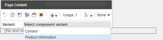 In the Experience Editor, if a product has been selected, the Product information variant displays the product information from the commerce system.