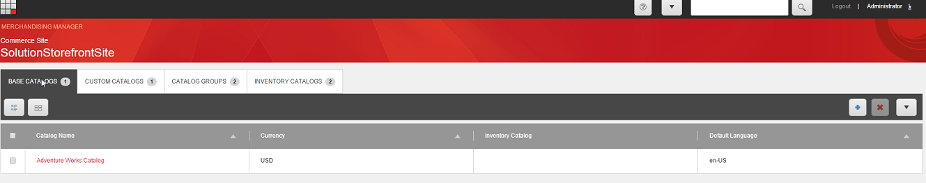 In Merchandising Manager , Details view is the default presentation of the Merchandising Manager tools. Details view provides a detailed view of your catalogs and related information.