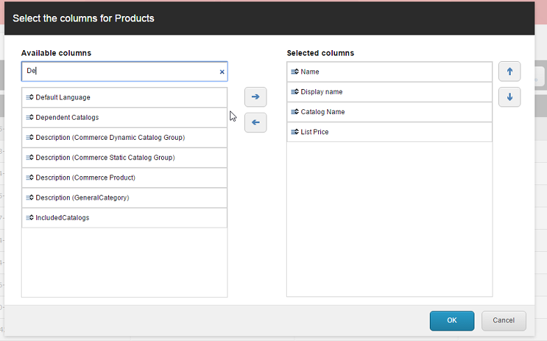 Filter the list of available columns